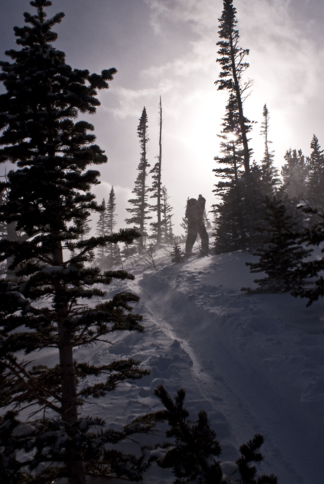 3/13/2011 – When you head out in the morning with a beautiful peak in mind, its hard to back down and call it off when the conditions aren’t safe. Although sometimes, you get lucky, and your ski plans are interrupted by wonderful deep powder. Dave, Jonny, and I set out with the plan of bagging Sawtooth Peak in the Indian Peaks this lucky morning, and ended up enjoying a few laps on Coney Island, with snow that was deep enough to offer up faceshots, smiles, and a whole lot of woopin’ and hollerin’… Really unfortunate day! Also, check out a short video Dave put together of the day on the BCA blog.