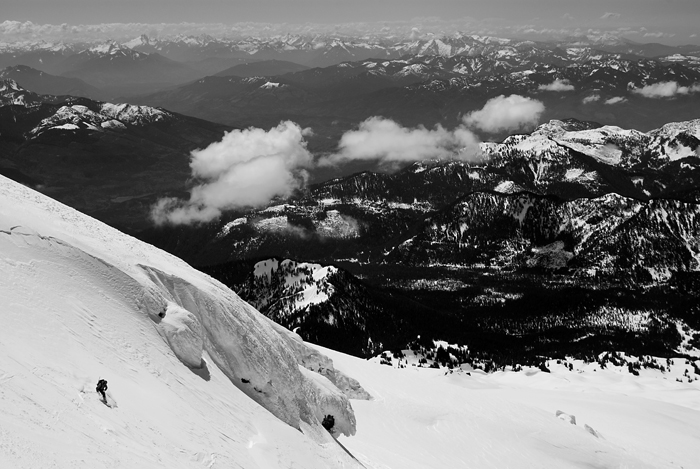 5/14/2011 to 5/20/2011 – After a week long roadtrip from Colorado back to Washington (due to Winston’s incredible stubbornness) the Pacific Northwest ski mountaineering adventure began. I met up with Jonny Cromwell, Daan Stevenson, and Andrew Steger shortly after their 3-day attempt at Mt. Rainier. We skied a classic PNW day at Alpental with rain down low and dumping snow on top to warm up my legs and relax theirs. We then picked up Dave Reed and headed off to Whidbey Island to plan for our next week of skiing. Over the next few days we went for the Hidden Lake Peak fire lookout station, bagged Mt. Baker, and ripped up the Baker area backcountry. Here is a link to Dave’s blog post about the trip – BCA Blog – and another link to a little video he put together – youtube. The photos below represent the trip through my eyes and my lens.