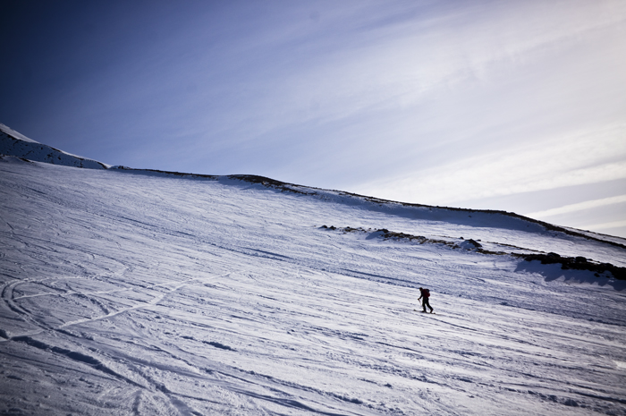 The only hold-up was a dropped ski, by myself, which offered us a half hour delay and some choice bonus vert for myself (1,500′) just below the Dome.