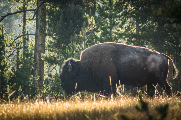 The camping seemed like a really good idea initially: it was free, away from RVs, and remote-feeling in a National Park… Then Dave went looking for a good location to pitch our tent and came upon what he assumed to be a huge boulder. Once he got nice an close, he realized that it was a huge bull buffalo munching down on some grass and came scampering back to camp a little spooked.