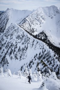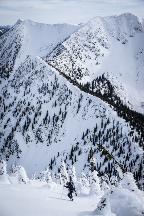 Grete Ascending Mt. Penrose with Mt. Nyack Looming Behind