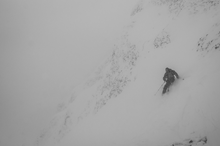 Jesse Dudley Eyeing the Big Couloir at Big Sky