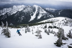 Grete Arcing her Baby-skis Down our Longest Ski of the Day